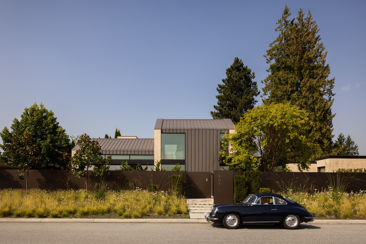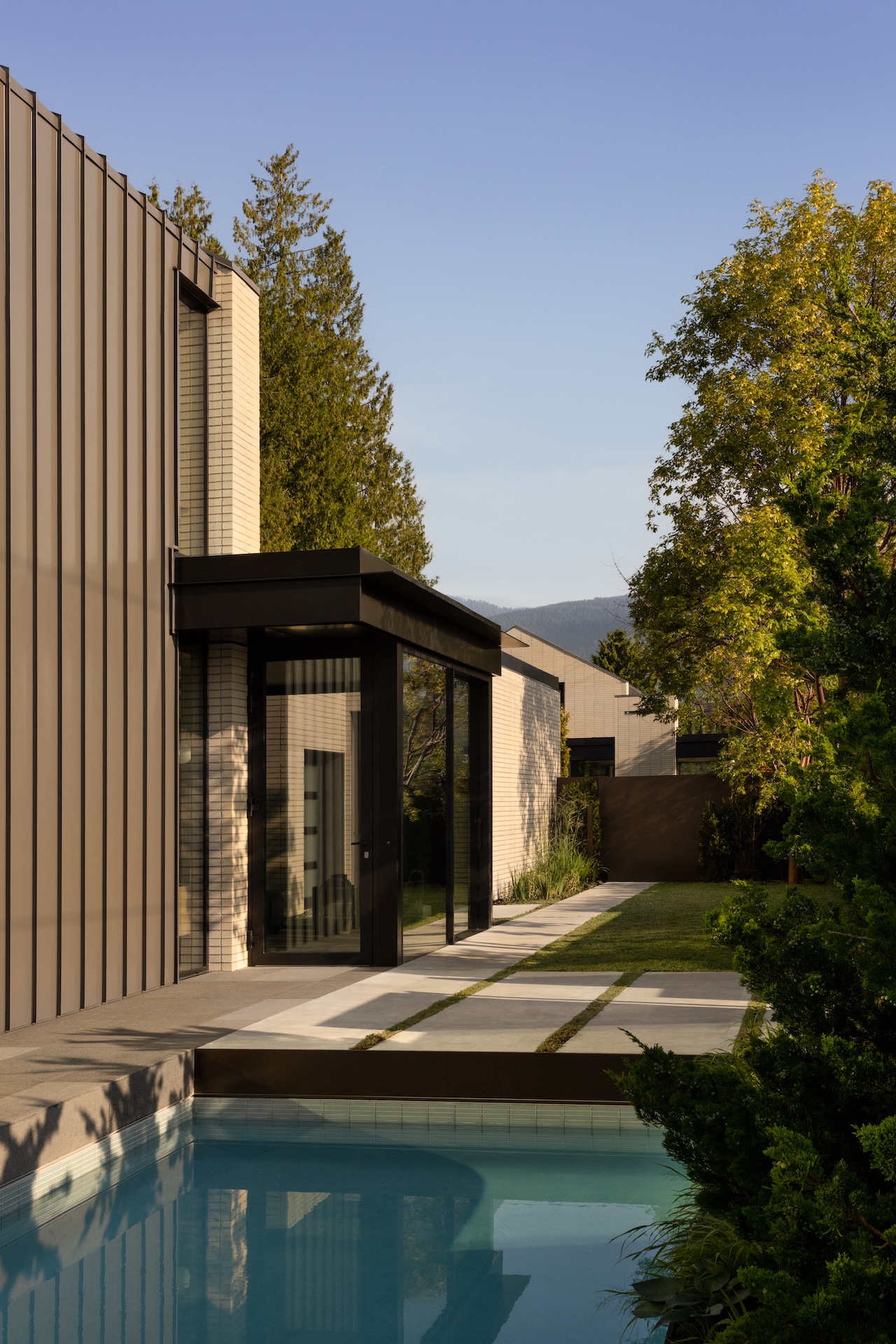 Two neighboring lots in North Vancouver, British Columbia, were combined into a single ground plane where a main residence, a pool house, and a greenhouse sit not as standalone buildings but as moments within one continuous landscape. Designed by Garret Cord Werner Architects with interiors by HB Design, landscape by Donohoe Living Landscapes, and built by Meister Construction, the project treats architecture, interiors, and terrain as a single continuous material argument – one where no element claims hierarchy over the others and every threshold between inside and outside is deliberately blurred.