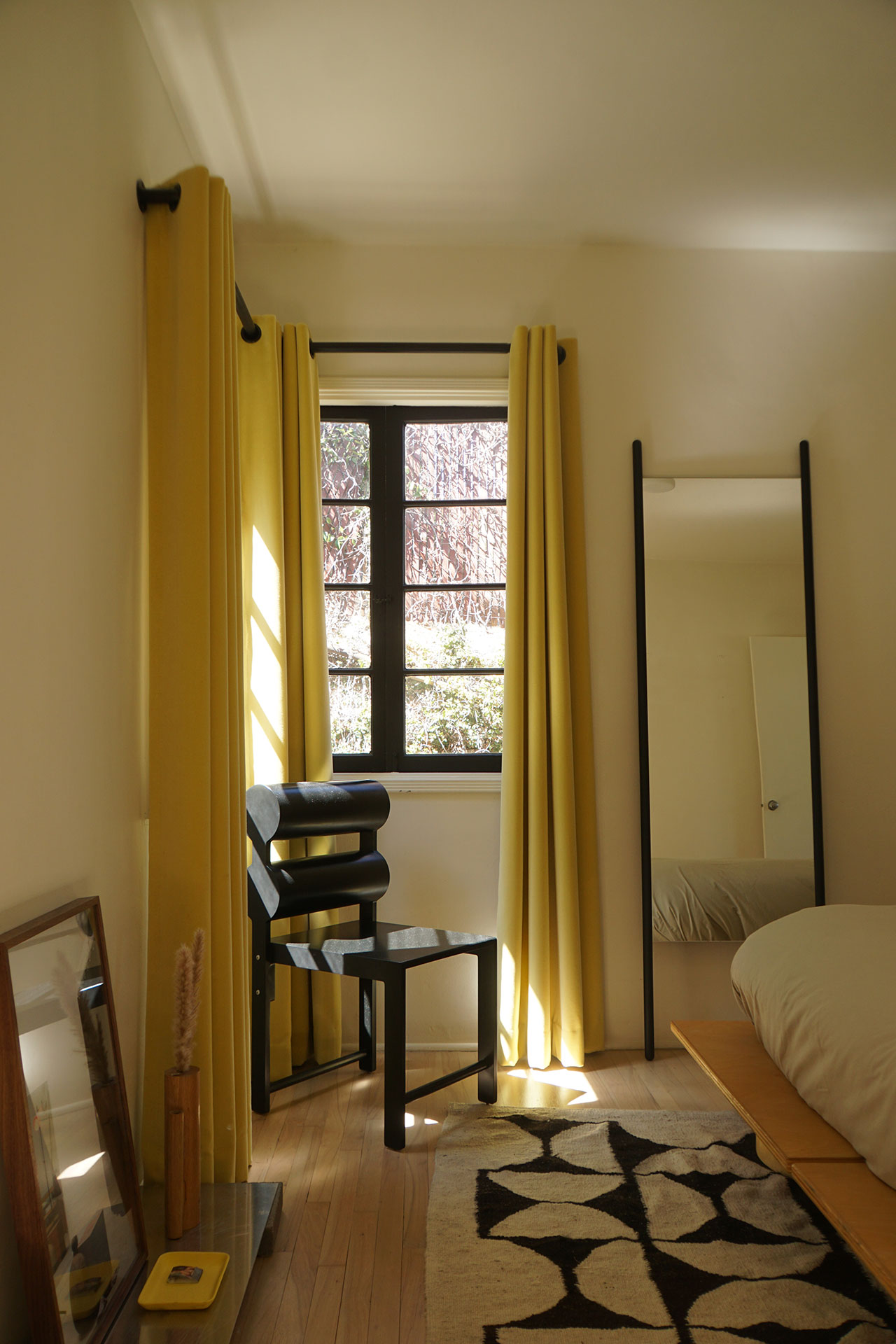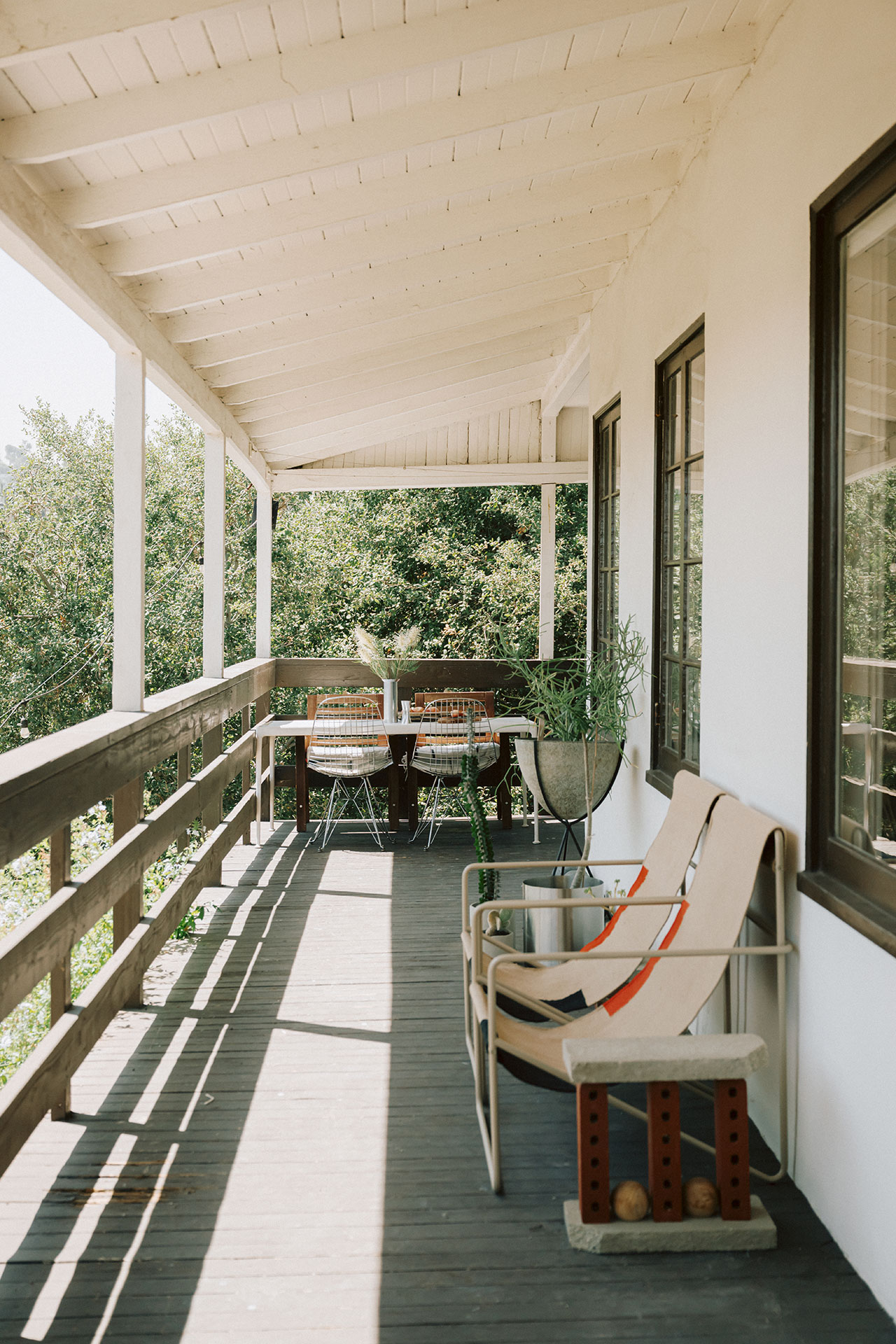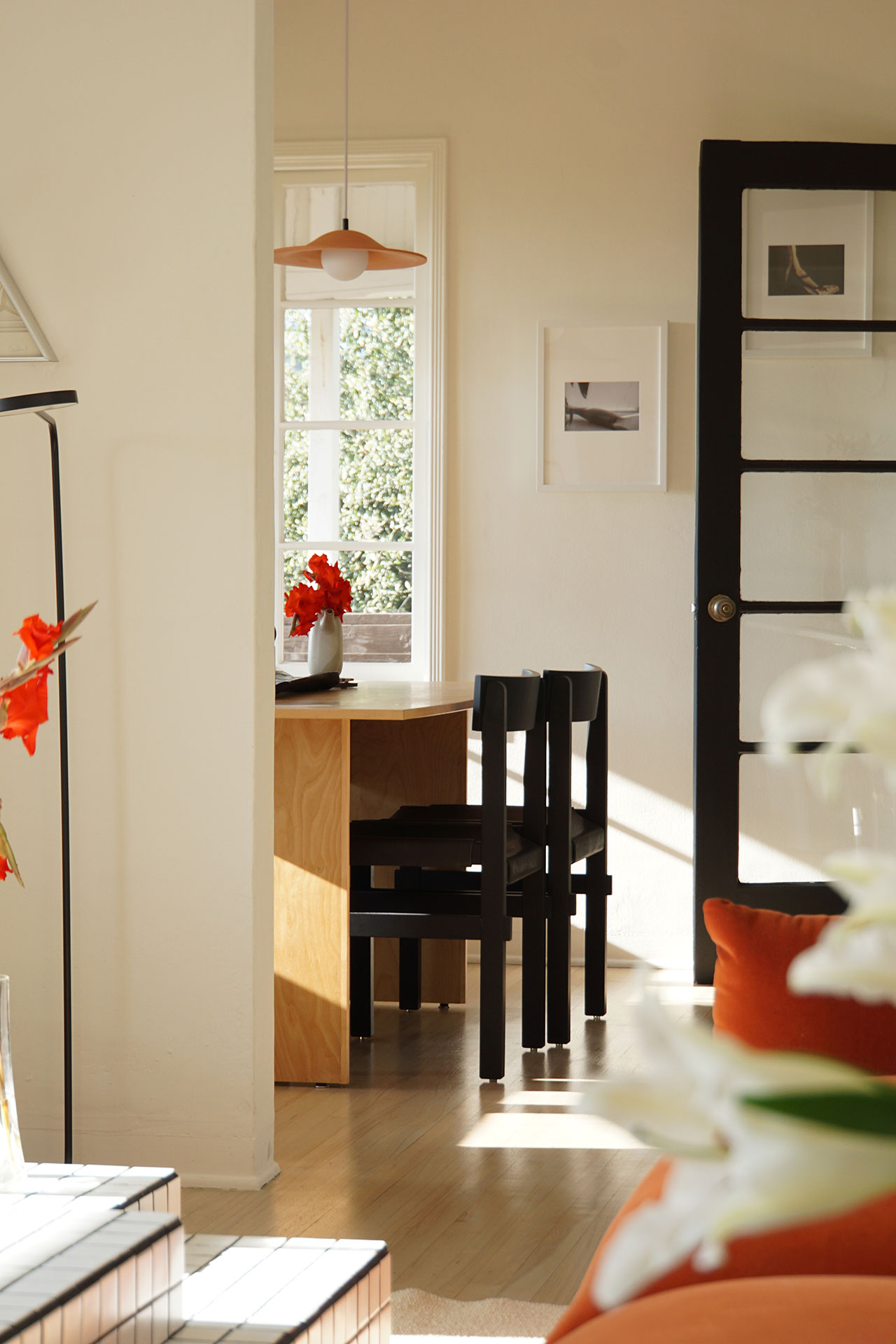 The renovation, completed over the course of a year, was less about transformation than calibration. The challenge, Yuri explains, was to modernize the home while preserving its modest 1940s charm. The original structure remains largely intact: a single-level, two-bedroom layout anchored by a front porch that stretches the length of the house. But inside, the project unfolds as a layered interior landscape, where objects carry the narrative weight more so than architecture.