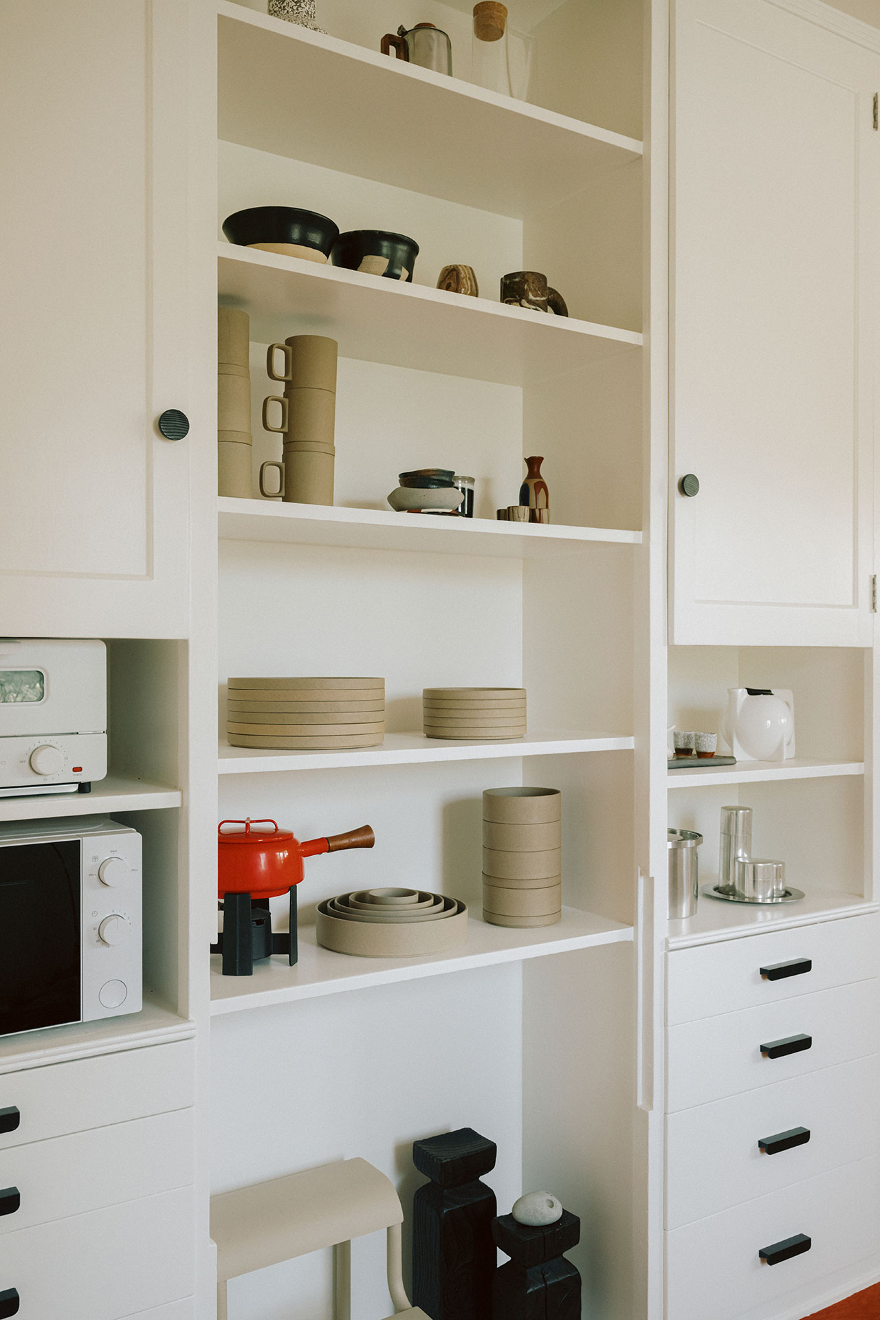 At first glance, the space appears to align with the contemporary preference for neutrality. Walls are painted white, floors finished in white oak. But this is not minimalism in the strict sense—it’s a staging ground designed to amplify the presence of things. And things, here, are abundant.
