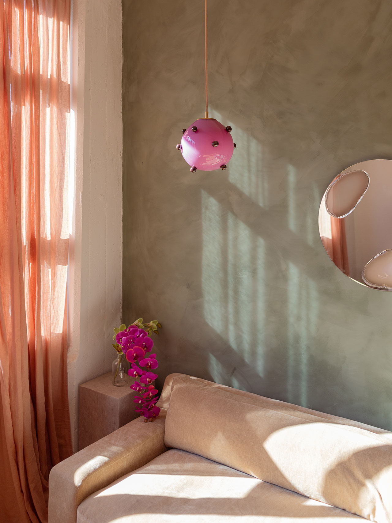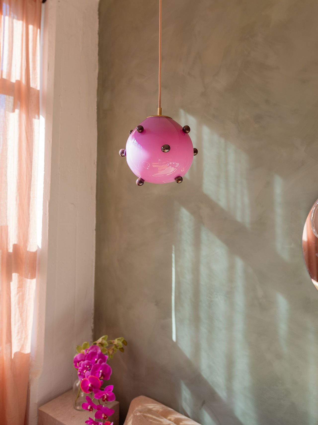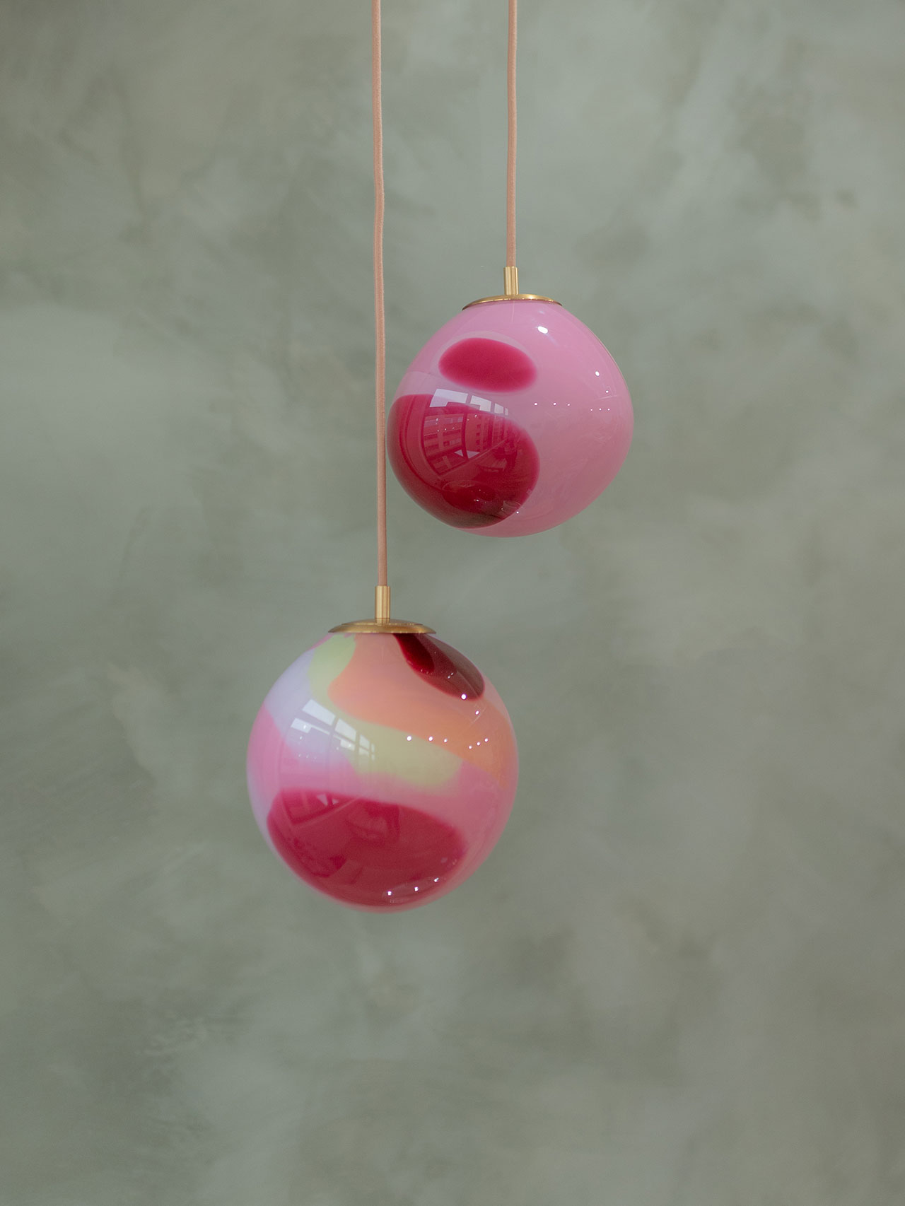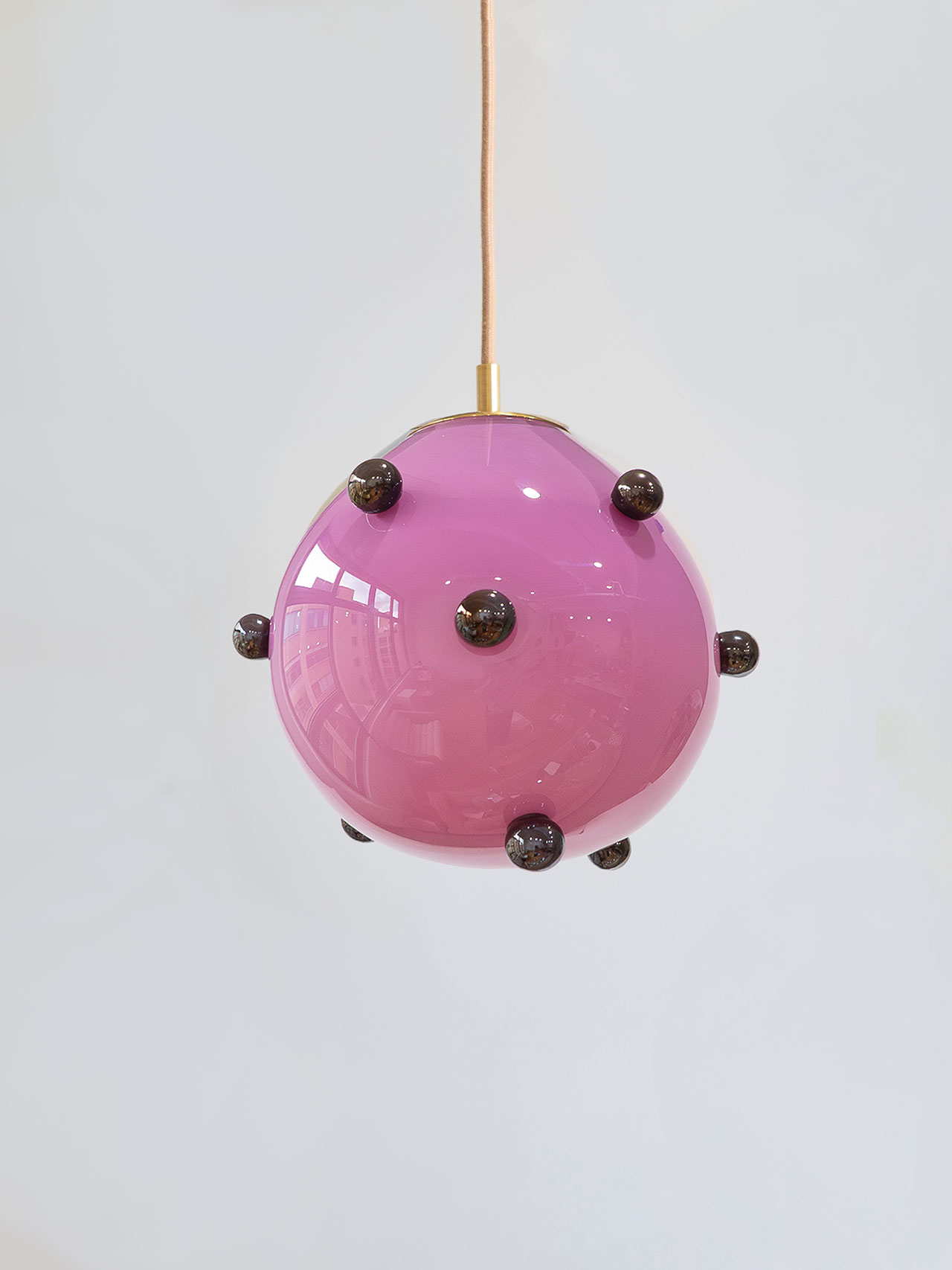 Some objects have an indescribable magnetism, something that sparks neurons deep within the brain. Call it what you like, style, substance, ‘it’, you know it when you see it. Brooklyn-based Courtney Kinnare taps in to this vein of creativity with her newest releases, the Berry Polka Pendants and her Sorbetto lighting series, now available at Tuleste Factory. Working in glass, resin, and jewelry, the vertices of transparency, reflection and layering are essential to her work.