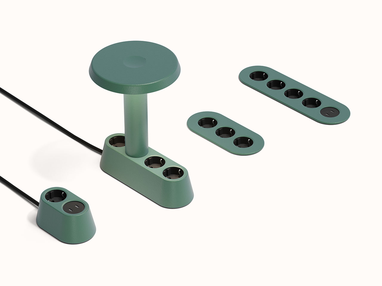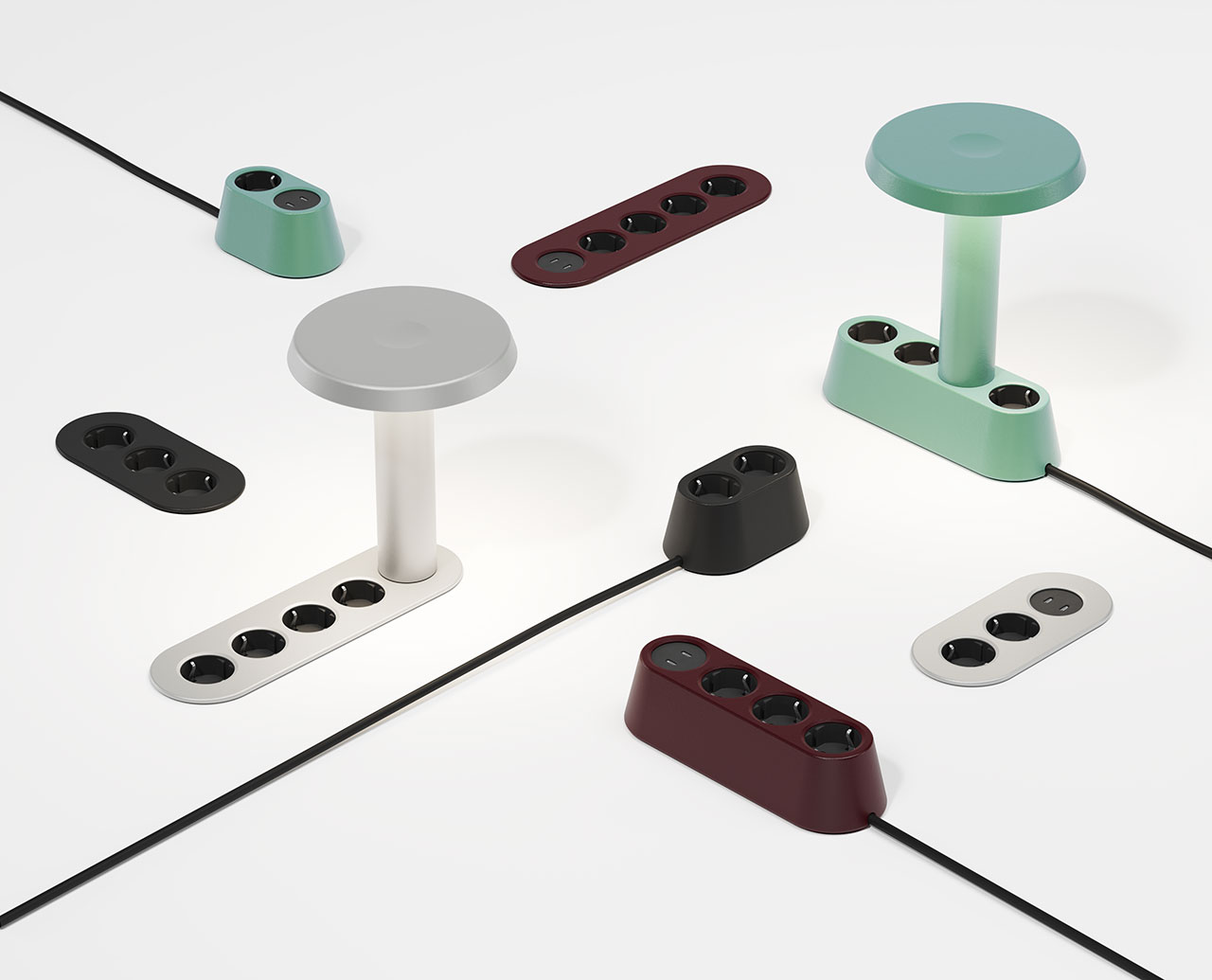 With varying numbers of plugs and multiple sizes of kitted-in lamps, the scalable ecosystem is lightweight and easy to move around. Its sleek, pared-back appearance and minimal proportions make the design relatively inconspicuous, though much of that is influenced by the chosen finish and colorway.