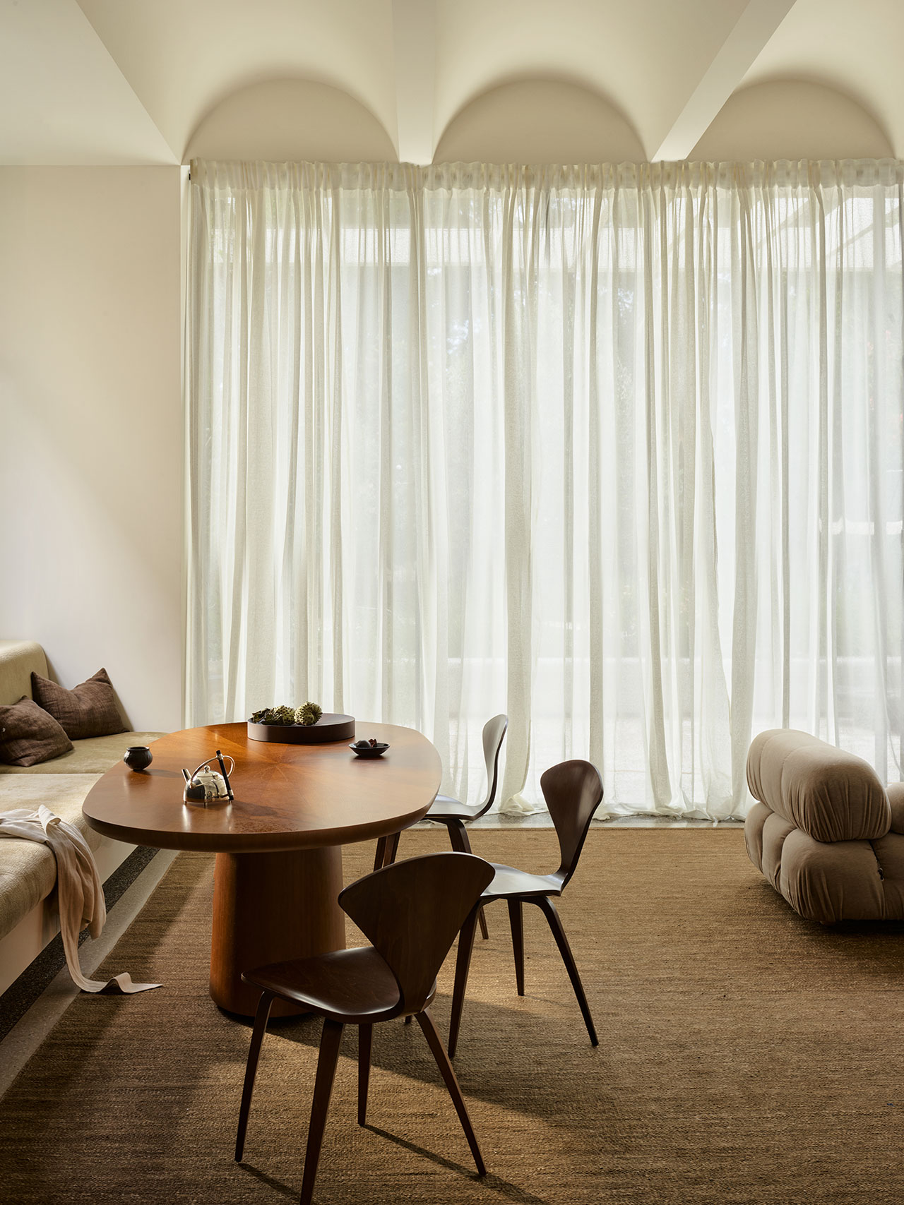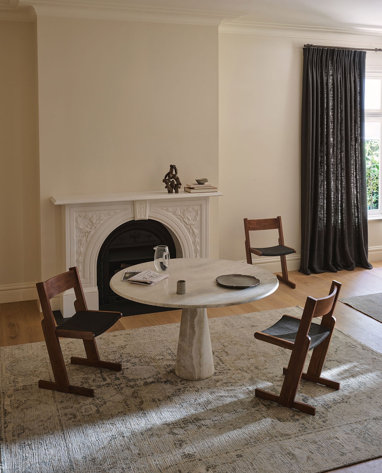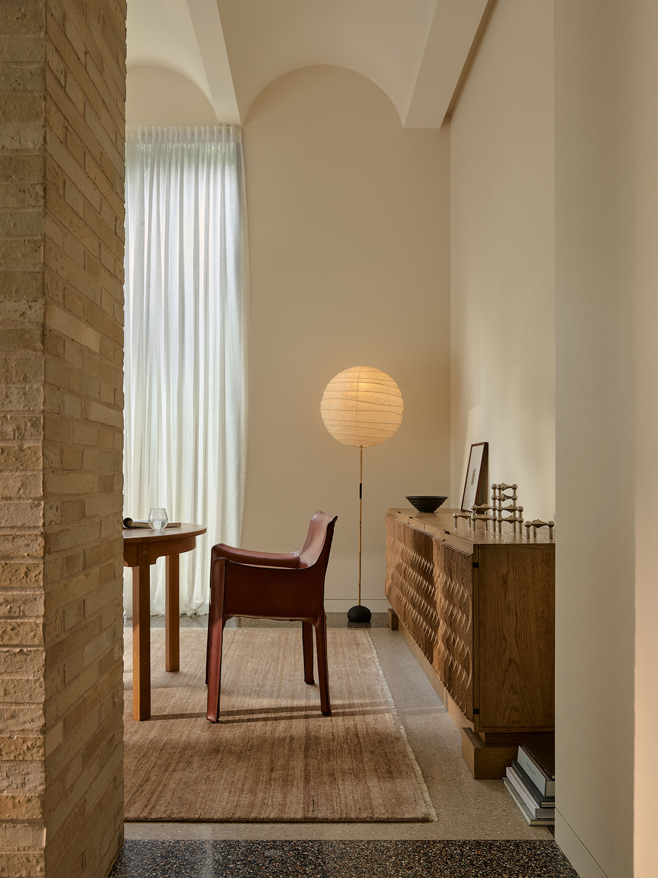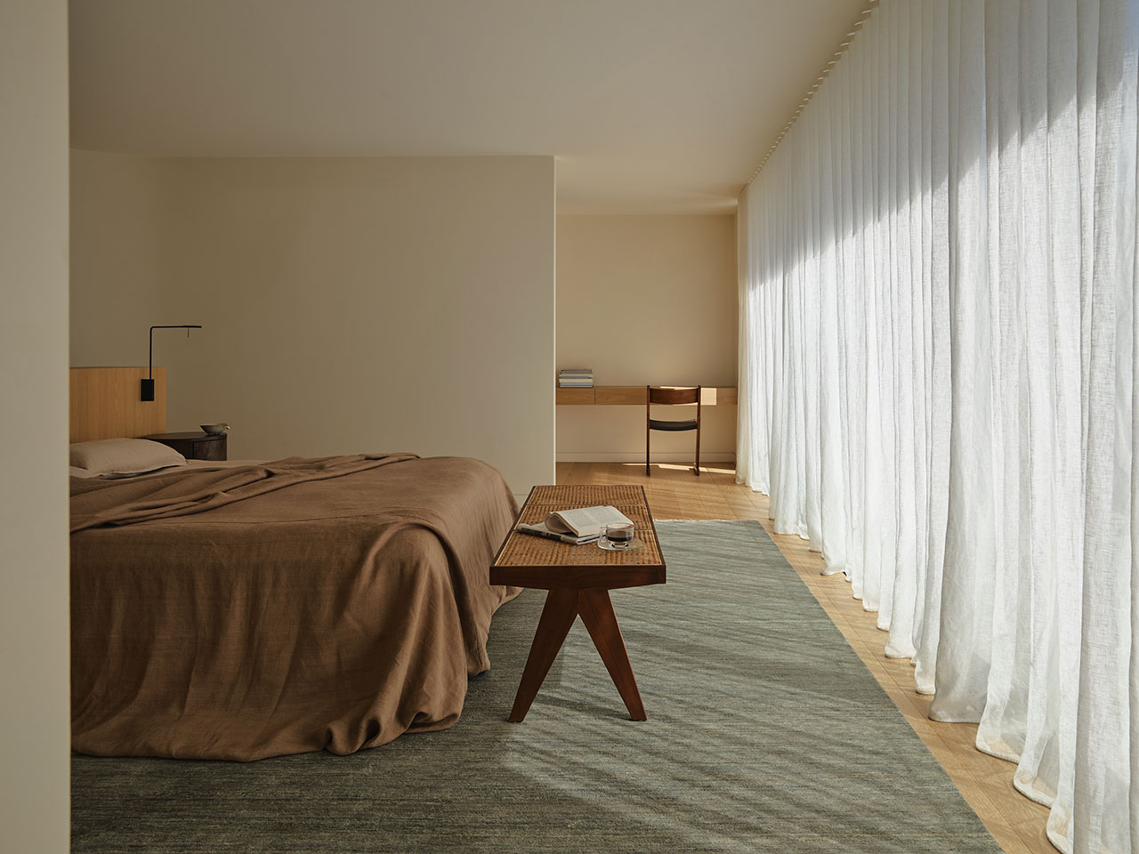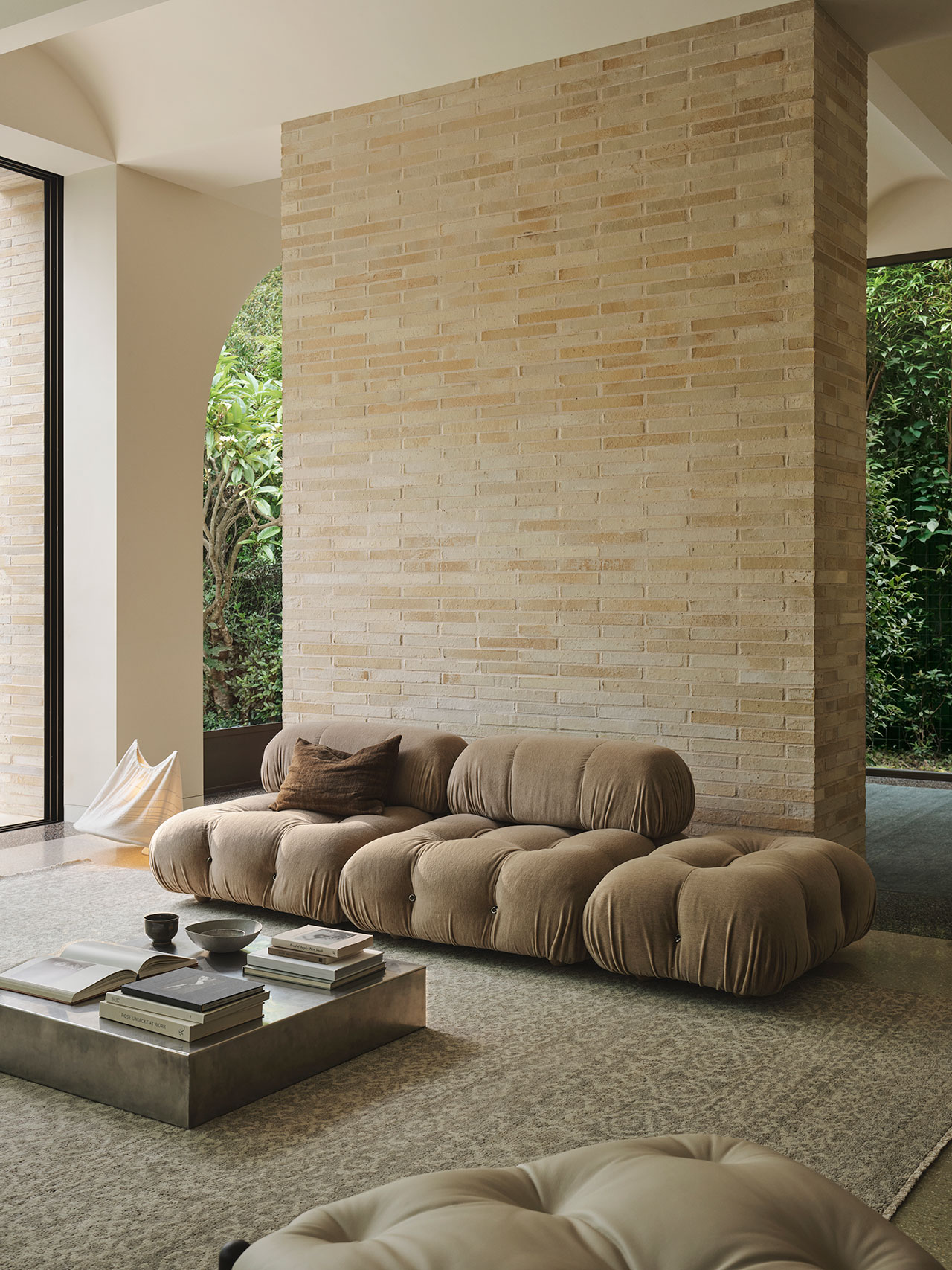 Odessa, seen here in Partridge, extends this language of quiet variation. A perennial design within Armadillo’s repertoire, its surface is defined by organic striations that ensure no two pieces are exactly alike. New tonal inflections—Partridge, Banksia, and Travertine—bring renewed clarity to the form.