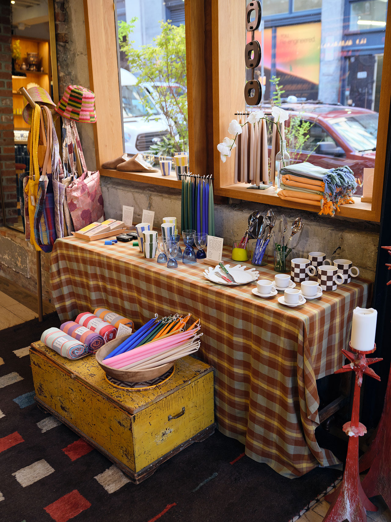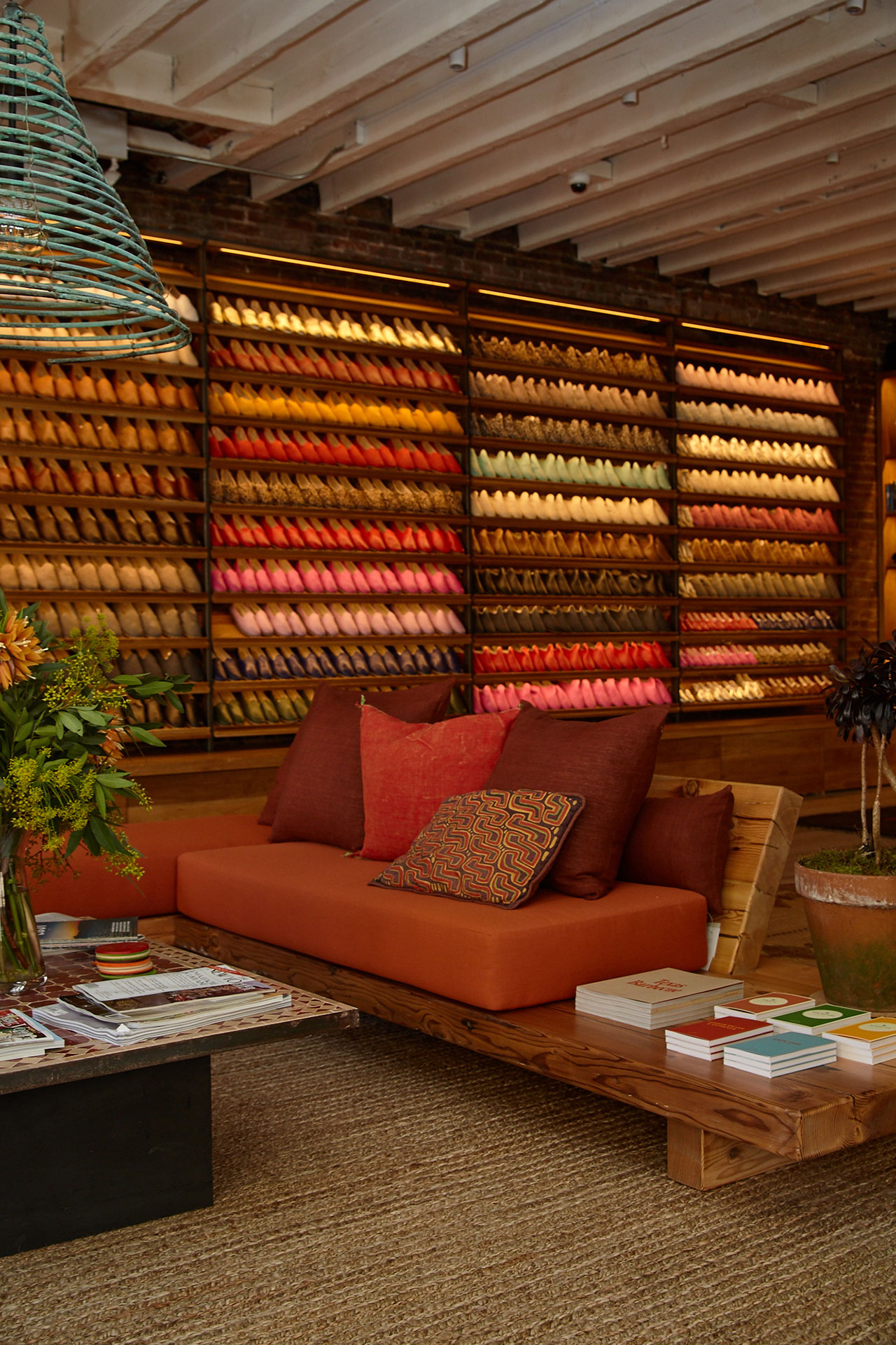 With prospective pairs scattered across the floor, the space feels aligned with centuries of use. Whether you’ve come to browse, shop, or simply sit, there is room for it all. A marked generosity is consistent throughout the walkways and merchandising that feels notably rare for the area. There’s space to relax, perhaps with a coffee, or a drink if it’s after five—or even before.