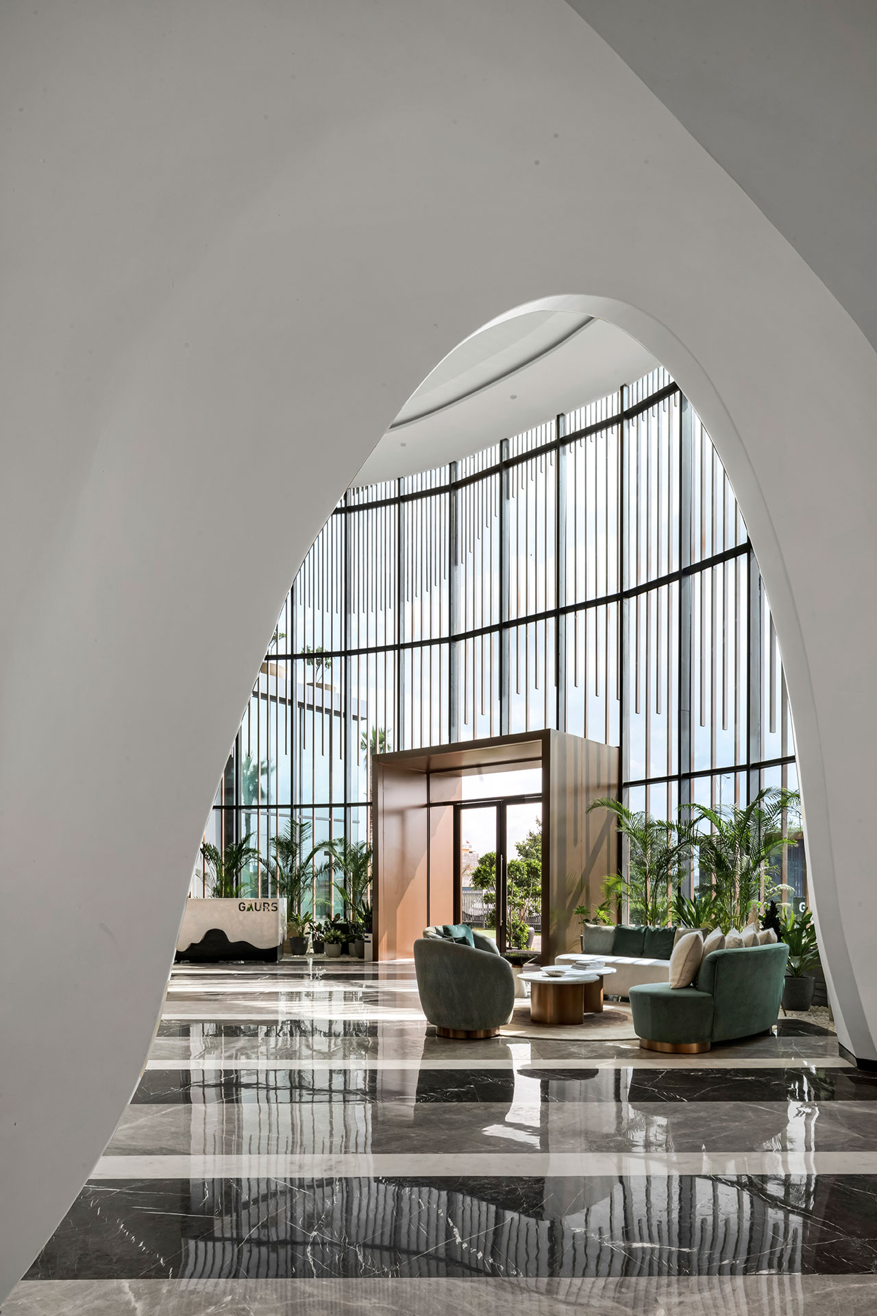 When a structure doubles as a sales tool it can serve as a powerful three-dimensional example of a brand’s ethos. Gaurs Group, a leading real estate development firm in India, wanted their latest sales gallery to be more than a place for business transactions but also a showcase of design and construction.