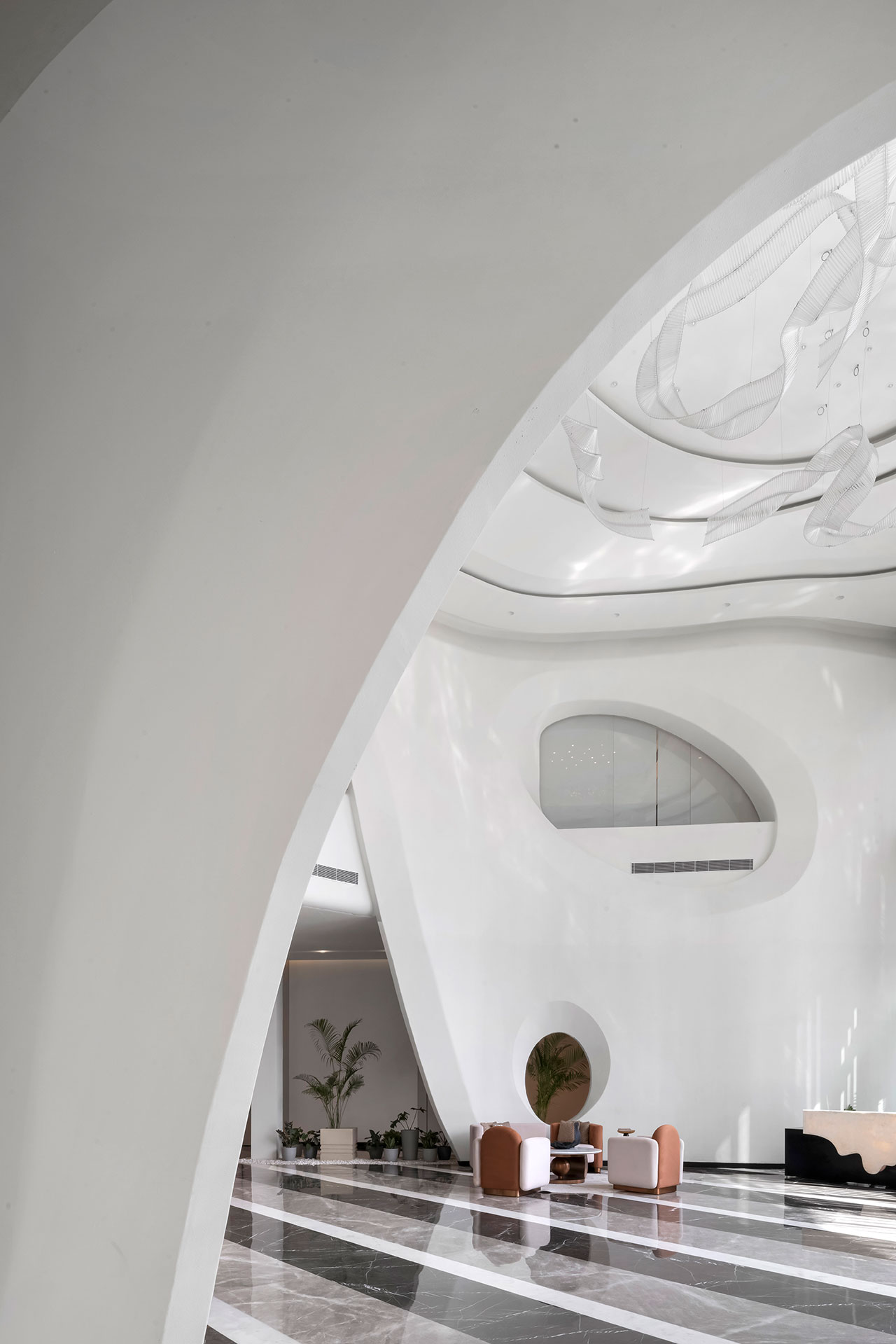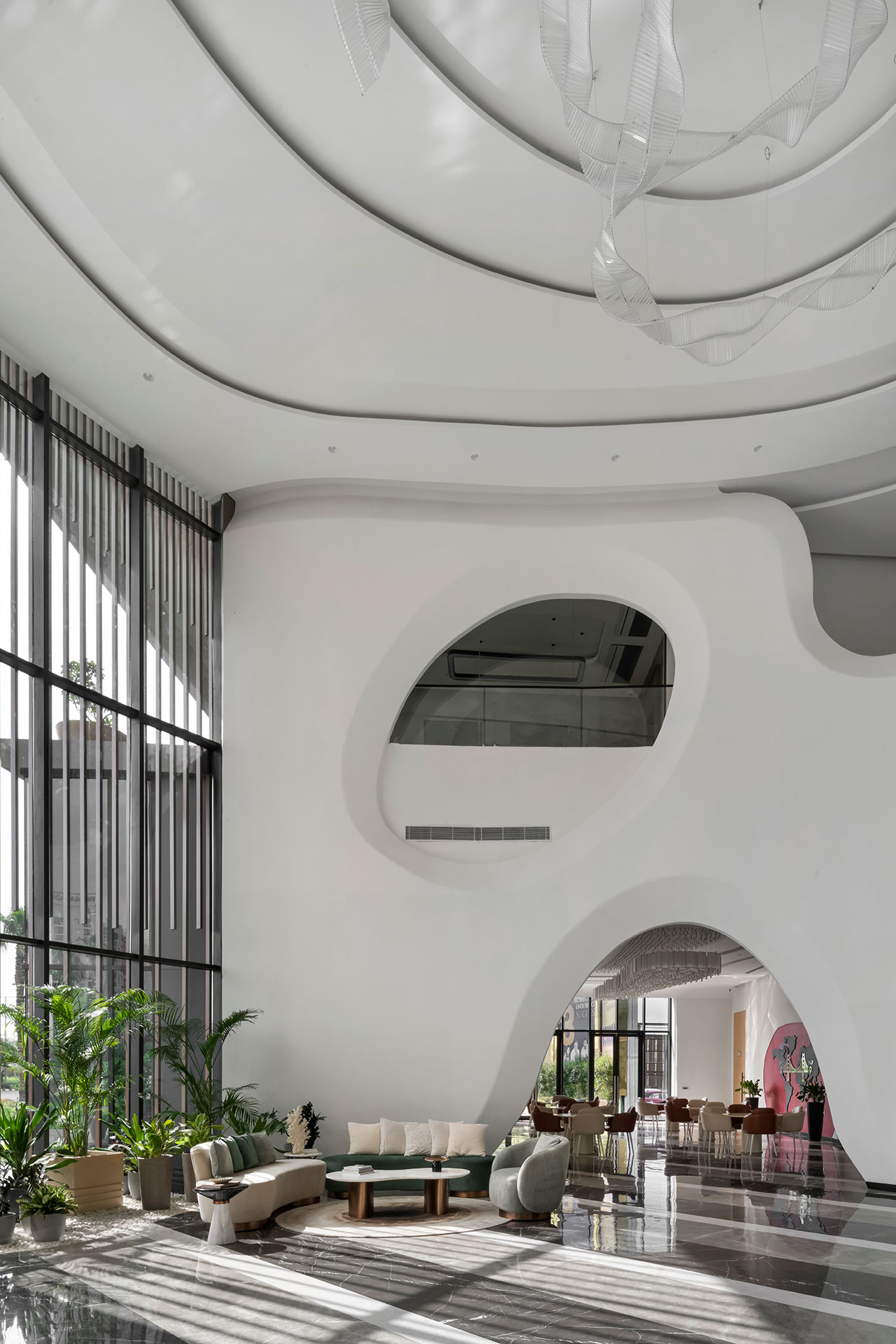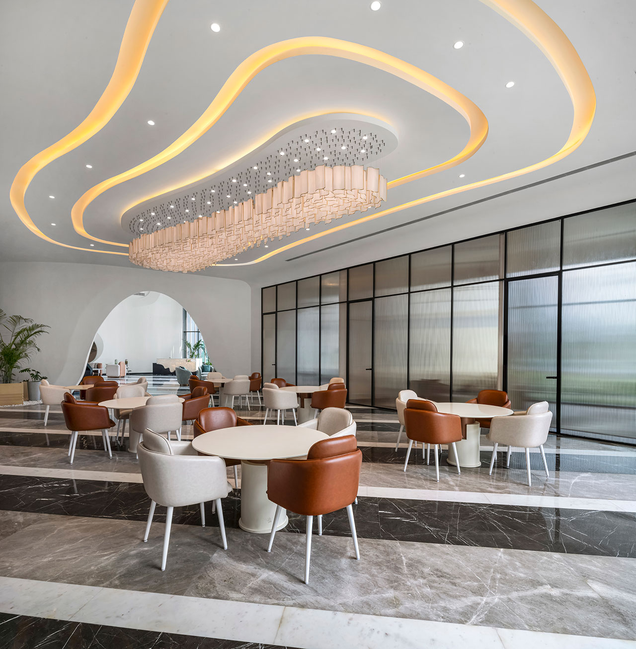 The simplest of elements were brought together in this immersive center to encourage positive interactions, beyond sealing the deal. “The organic forms are really a surprise that create an elevated experience for everyone to enjoy,” Singhania notes.
